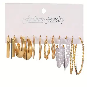 6 Çift Zarif Halka Küpe Seti - İmitasyon İnci ve Vintage Punk Tarzı Set 2
