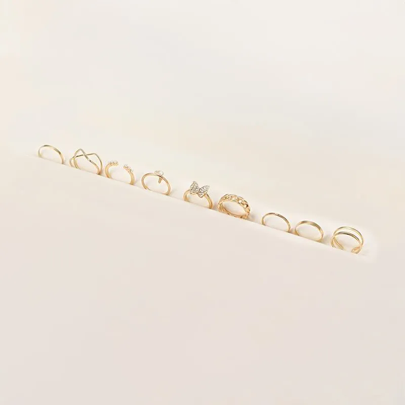 9 parça şık yüzük 3. setimiz, çiçek, kelebek ve kalp tasarımlarıyla her tarza hitap ediyor. Günlük kıyafetlerinizden özel parti aksesuarlarına kadar geniş bir kullanım yelpazesine sahip.