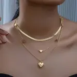 Altın renkli zarif çok katmanlı zincir kalp kolye, şıklığı ve zarafeti bir araya getiriyor. Bu yığın kolye, modern tasarımıyla gündelik stilinizi yükseltirken, özel anlar için de mükemmel bir tamamlayıcı olacaktır.